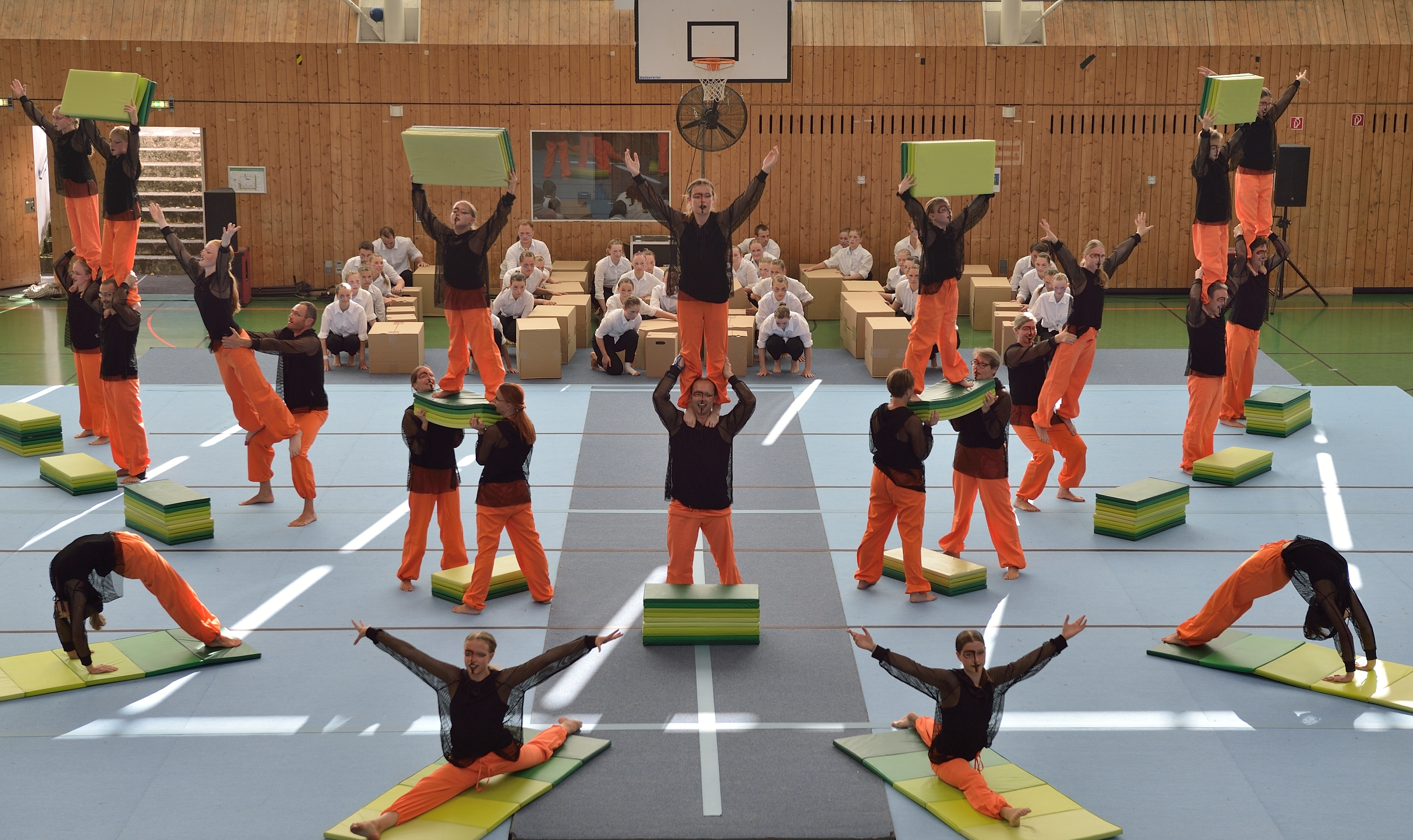 Bekannt ist Mattissimo für seine ungewöhnlichen und kreativen Showeinlagen: ob mit klappbaren Turnmatten, spektakulären Hebefiguren oder fließenden choreografischen Bildern – wir zeigen Turnen, Akrobatik und Bewegung einmal anders.